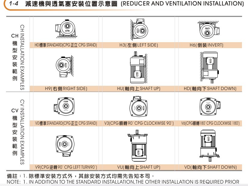 减速机的安装方式决定了减速机的油孔位置。因为每个齿轮减速电机厂家虽然了解齿轮减速电机这个行业里的标准,但是同时也有自己品牌厂商的标准就如同他们的型号代码一样,每家都有自己的个性来区分,例如部分小型齿轮减速电机标准出厂没有油孔就是他们的品牌厂家标准),故油孔位置在下单生产之前需要确定,否则做好的成品是不可以再加工油孔的,并不像我们普通都认为的那样再加一个油孔那么简单,如果油孔位置错误,要么重新购买正确的油孔要么改变安装方式,还有就是让他从原来的油孔中漏油。这些都是我们不想看到的,如需防止以上问题出现请一定确认好安装方式。