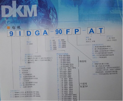 最近有许多客户一来就给了一个型号或者铭牌,比如:9IDG2-90FP.在这里我们统一解释一下,以前DKM的型号确实是如此,但是韩国所用频率为60HZ,而中国为50HZ鉴于所有电机都是在韩国生产,为了便于区分,所以近年来DKM的铭牌型号有所改变,如9IDG2-90FP中的“2”,表示单相220V,60HZ,我们现在应写为“C”(9IDGC-90FP)才表示单相220V,50HZ。所以现在市面上如果是近两年生产的DKM电机,铭牌上如果仍然用23表示50HZ,那么我们基本上可以断定是仿冒的。所以很多客户在接到我们的报价的时候觉得价格很高,因为我们所代理的DKM电机是保证原装进口的,那些市面上很便宜的、铭牌仍然使用老铭牌的DKM电机基本上是仿冒的,期待新老客户能买到正品!