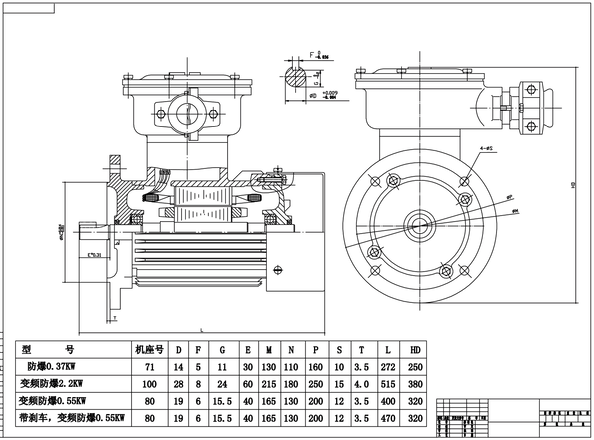 本系列YB3隔爆型三相异步电动机的功率等级、安装尺寸符合国际电工委员会(IEC)标准,其队饮关系与德国DIN42673标准相同,有利于出口设备的配套和引进设备的备品备件。详细外观图例如: