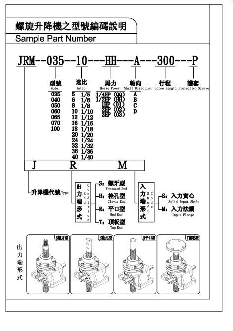 三:台湾成大(CHENTA):减速机之螺旋升降机的组成部分如下↓
