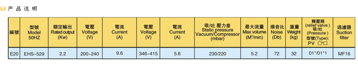单段鼓风机EHS529/629/639吹吸两用,高品質,高质量,每台鼓風機在出廠前均經過嚴格測試。 電壓:萬國電壓50HZ/60HZ-220V-380V-415V特殊电压可特殊订做。 風機大量運銷國內外市場,聲明卓著,供不應求;因感於全球產業蓬勃發展,故決意增廠制銷,以供國內所需,進而外銷海外各地,也兼具提升工藝技術水準.高壓鼓風機為生產製造業廣泛需用之機械,粉粒料的排,吸法輸送,液體攪拌和裝瓶,燃燒和養殖的供氧.散熱設備及環境之冷卻,無观存在不需要它;由於高壓氣流的進口和氣流下端有負壓,因之亦可作為吸著應用.塑膠,金屬,化工,礦業,養魚,醫療,裝填,包裝等等,均有極大的需求.