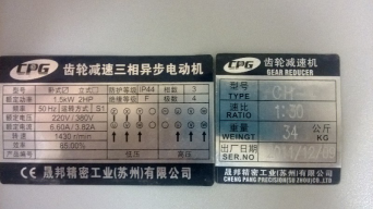 但是经常会出现一种情况,客户会提供一些参数,比如1.5KW,1:30,CH-4,380V,50HZ等等,业务员在看到这些参数时就会把它整合在一起给出完整的型号:CH1500-30S-32,对于一些不太了解CPG减速机电机的采购员和经销商,就不知道有什么区别,是提供的参数不对吗?其实是因为一个是铭牌上的参数,一个是完整的型号,都是指同一种,如何通过铭牌选型呢?